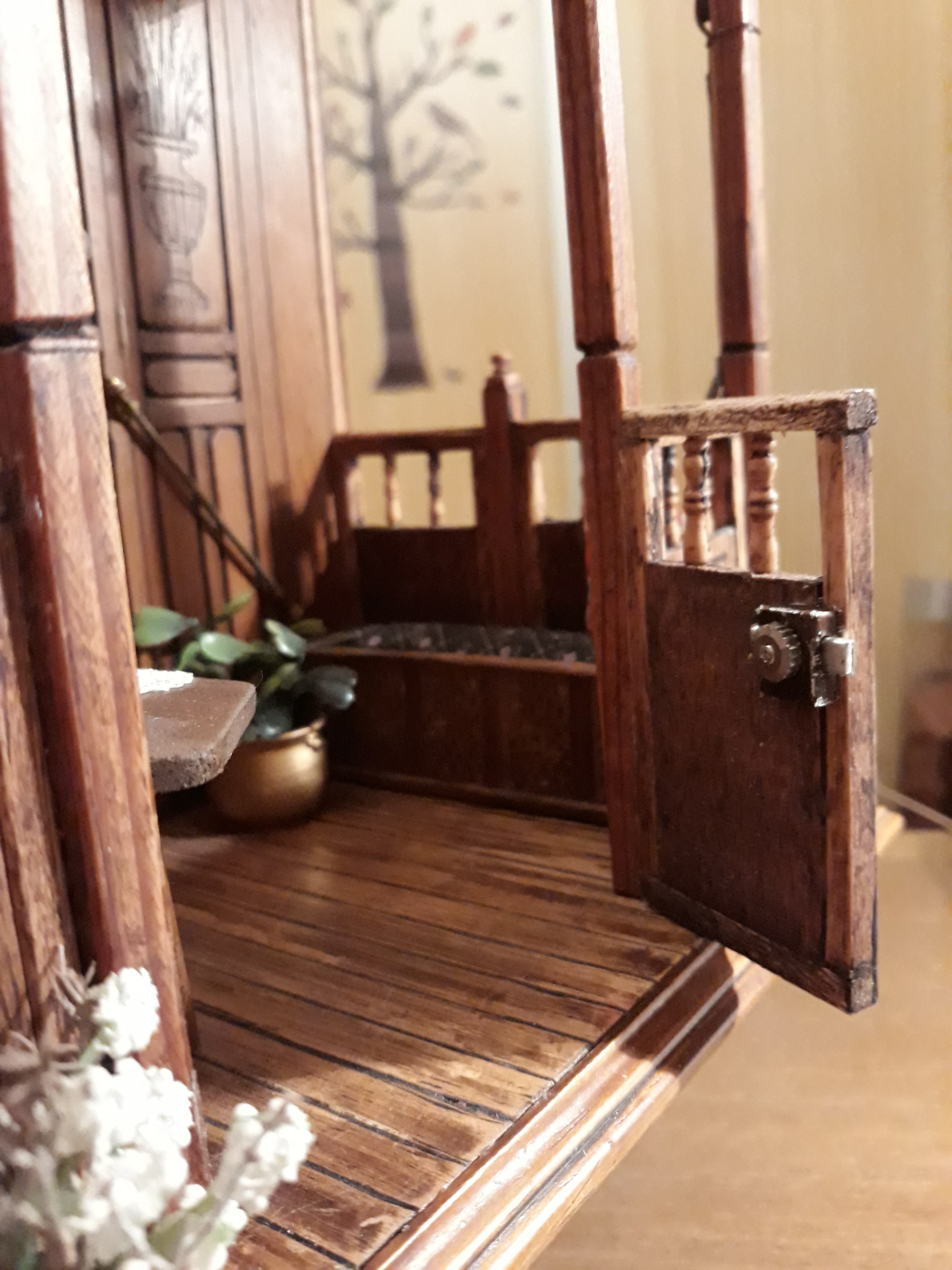Il y a eu quelques changements aussi dans la balustre, car elle paraissait trop massive. Elle a donc été aérée à l’aide de deux ouvertures. L’avantage est qu’elles permettent de mieux observer les objets placés sous le banc du cocher. Oups le petit réverbère n’est pas sur son socle aimanté !